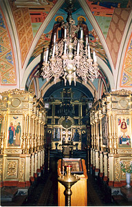 О Голгофском Кресте храма преподобных Зосимы и Савватия Крест сделан по образцу того креста, который находится в старообрядческой часовне московского Преображенского кладбища. Исходник был изготовлен византийскими мастерами и относится к XIV веку. Как он попал в Россию, можно только гадать. Стоит он у старообрядцев крайне невыгодно – поместили его в часовне, которая так мала, что и обозреть его весь сразу практически невозможно, рассматривать его там можно только по частям. Из предания известно, что Крест Христов был трехсоставным: он был изготовлен из кедра, певка (сосны) и кипариса. Поэтому, следуя этому образцу и был воспроизведен также трехсоставный Крест, который и находится теперь в нашем храме. Изготовлялся он в Сергиевом Посаде. Вся рельефная часть Креста (Пречистое Тело Спасителя) выполнена из кипариса, сам Крест – из сосны, табличка же с надписью – из кедра. В оригинале на Кресте (у старообрядцев) надпись: «Царь Славы», на Кресте нашего храма надпись была изменена на упомянутую в Евангелии: «Иисус Назорей Царь Иудейский» - на еврейском, греческом и римском (латинском) языках. Крест расписала Татьяна Брягина, дочь знаменитых изографов Дмитрия и Евдокии. Басмой Крест украшен только у нас в Гольянове, в оригинале басмы нет. Роспись храма Роспись начата была с трапезной части. Чтобы расписать храм в стиле фресок XVII века, приглашены были прославленные потомственные мастера – Брягины (Евдокия Тимофеевна и приемная дочь Брягиных Татьяна). Успешно начатая роспись, после перерыва в работе, связанной с пристройкой и оформлением западной части храма (центрального входа), завершена была в 2005 году.